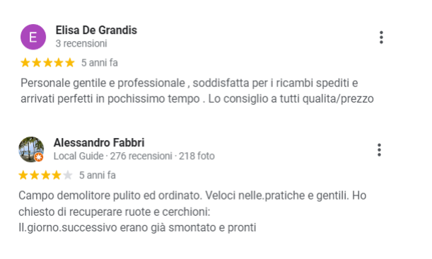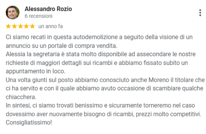 Presso il centro di autodemolizioni, inoltre, potrai trovare in vendita i migliori ricambi e accessori per auto e moto di tutte le marche. Richiedi pure un preventivo gratuito, personalizzato e senza impegno telefonando al numero o scrivendo all'indirizzo mail che trovi nella pagina dei contatti. Se preferisci, invece, puoi acquistare direttamente i nostri prodotti online.